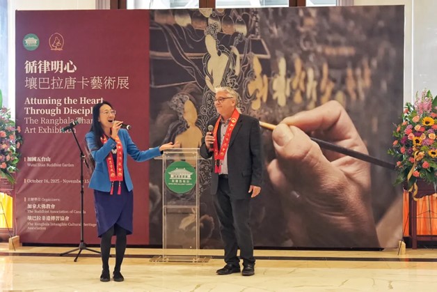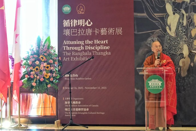 加拿大佛教會會長、加國五台山住持達義大和尚在開幕致詞中指出,這是加國五台山首次舉辦藝術類展覽,不僅具有開創性的意義,更承載著加拿大佛教會推動中西文化交流、弘揚佛教藝術的初心與願景。本次展覽不僅是加拿大史上規模最大的唐卡藝術盛會,更是一場漢藏文化交融共生的生動實踐。同時,也願以此展覽為緣起,未來在加國五台山迎來更多元、更豐富的文化展覽,令佛法之光遍照人間,利益北美有情眾生。