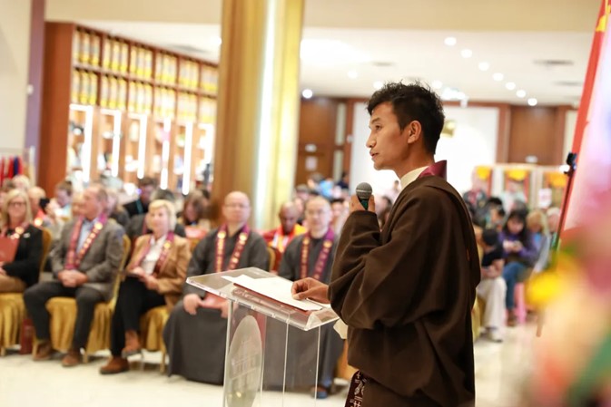 此後,四川壤巴拉非遺傳習協會會長、青年藝術家代表桑州致辭,他表示非常榮幸和喜悅,來到加國五台山這樣一個殊勝的道場舉辦唐卡藝術展。壤巴拉非遺傳習協會自2010年創建以來,免費給當地年輕人提供學習機會,傳習唐卡技藝,​​先後培養出了兩百多位青年唐卡畫師,在北京、上海、成都等地舉行了二十多場藝術展覽,並與清華大學、中央美術學院、故宮等高校和博物館展開了教學和科研合作。他衷心希望能夠透過這些用心繪製的唐卡來發明心地、開現智慧,促進漢藏交流和中加友誼。