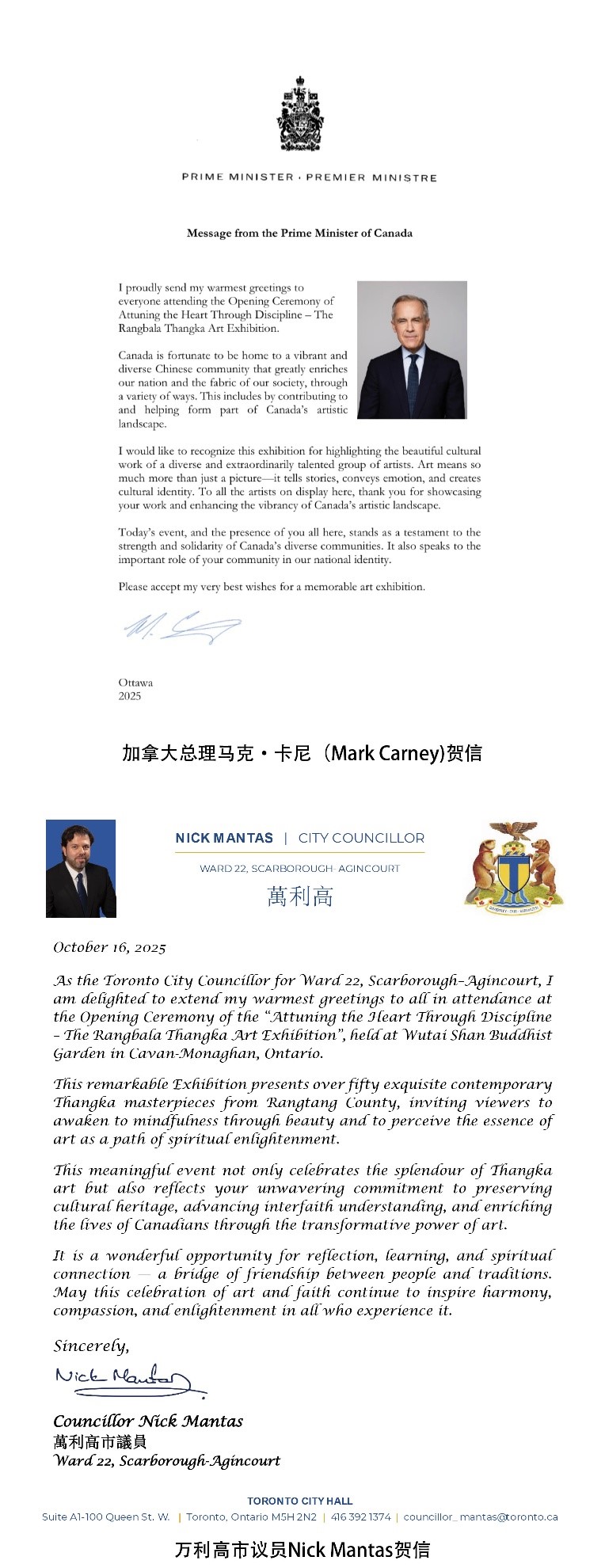 欣逢盛會,加拿大總理馬克·卡尼(Mark Carney)也特地致信指出,「藝術的意義遠不止是一幅圖畫——它講述故事,傳達情感,並塑造文化認同。感謝所有參展藝術家展示你們的作品,為加拿大的藝術景觀注入更多生機與活力」。馬克·卡尼在信中向主辦方及全體藝術家表達誠摯祝賀,並強調:“今天的活動及在場各位的參與,體現了加拿大多元社區的團結與力量,彰顯了在國家認同中的重要作用。”