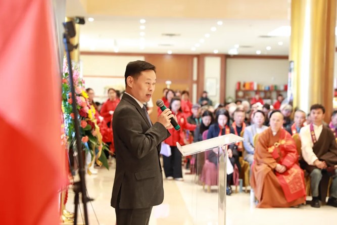 加拿大佛教會會長、加國五台山住持達義大和尚在開幕典禮上發表演說