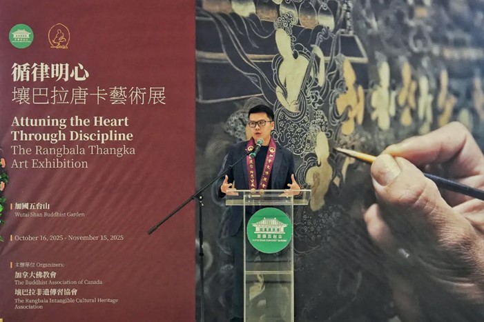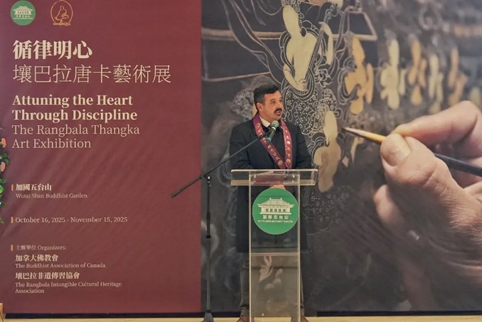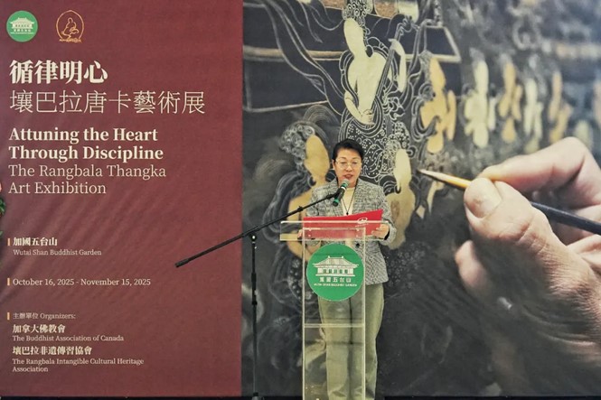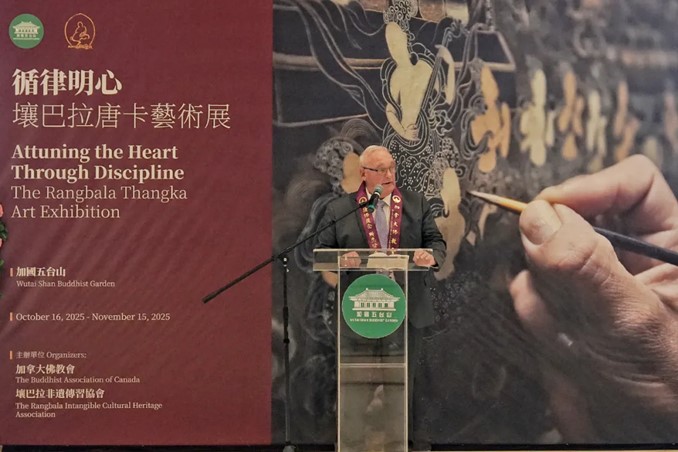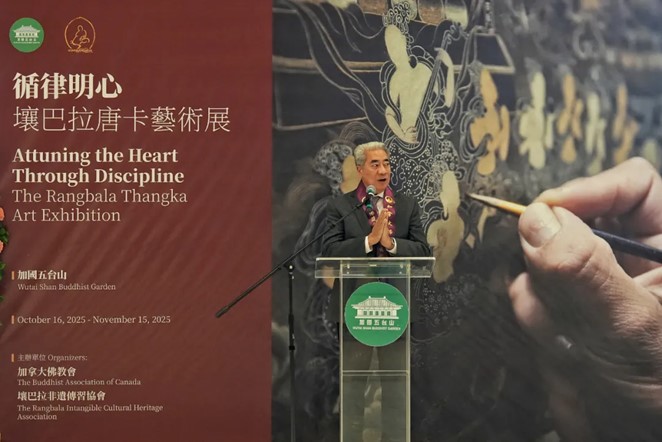 2025年10月16日,加國五台山善財廳迎來了加拿大史上規模最大的唐卡繪畫藝術展-《循律明心·壤巴拉唐卡藝術展》隆重開幕,吸引了各界嘉賓和人文藝術愛好者齊聚現場。