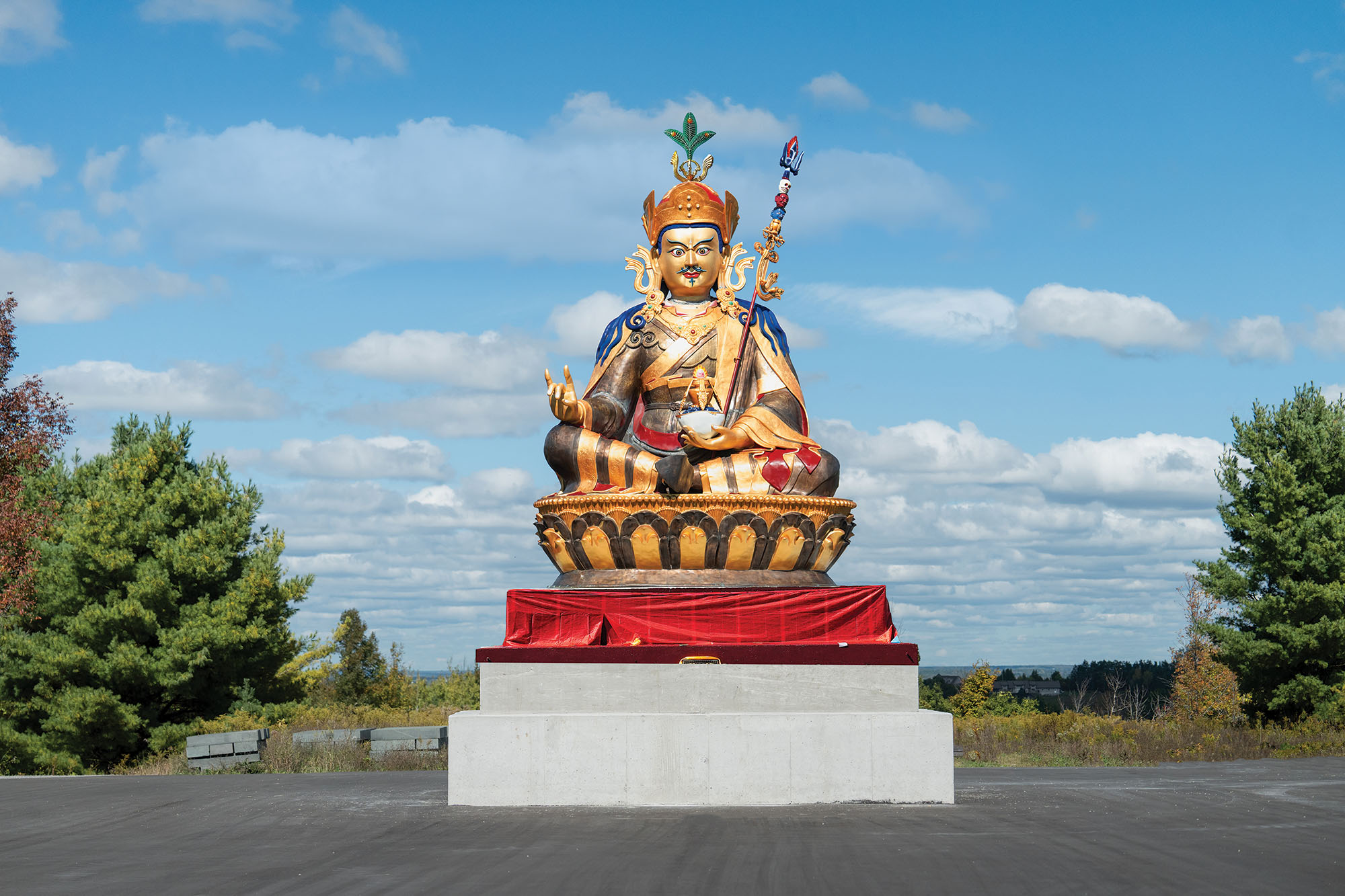 他具足無量慈悲與無上智慧,也是佛陀授記為「涅槃後二十八年時我的化身」而出現的殊勝聖者,為無上密乘教法做出深廣的弘揚,被譽為第二佛陀蓮花生。八世紀中葉,約公元762年左右,蓮花生應藏王赤松德贊之請,與菩提薩埵(寂護論師)共建桑耶寺。蓮花生於密意智悲雙運的境界中,以無礙廣大的神通力度化人與非人等無量眾生,為雪域高原奠定佛法基礎。蓮花生大士在桑耶寺建立僧團、培養譯經者,並迎請印度諸多大翻譯師、班智達入藏,在師君三尊的主持下,將90%左右印度梵文版本的佛陀顯密經典與論著,翻譯成藏文典籍,現稱為《甘卓爾》《丹卓爾》,共三百餘冊,內容為三藏、四續、九乘次第,包含了三乘顯密一切教法,奠定了藏傳佛教的不倒里程碑。依敦煌的歷史記載,蓮花生不僅在西藏、衛藏與康藏等地弘揚教法,並且來到文殊菩薩道場聖地五臺山,加持聖地與弘揚佛陀教法,這也是我們五臺山與蓮花生大士殊勝因緣的由來。